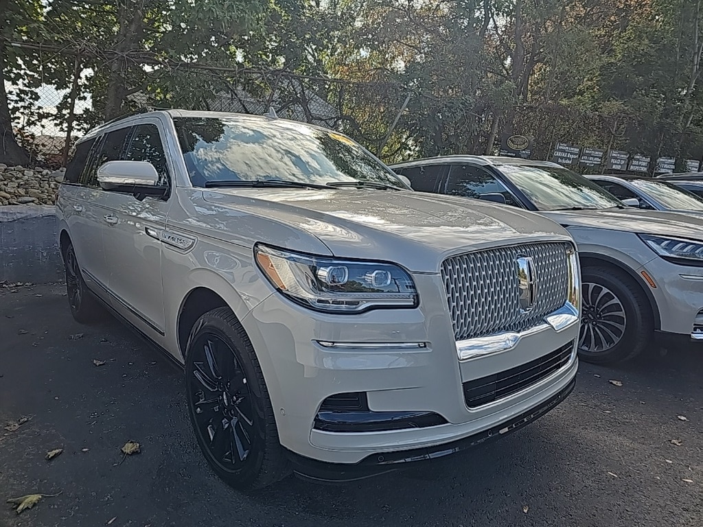 Equipment Group 201A Reserve I, Heavy-Duty Trailer Tow Package (26mm Radiator, Class IV w/4-Pin & 7-Pin Connectors, Electronic Traction Assist (eLSD), Front Tow Hooks, Pro-Trailer Backup Assist 2.0, Smart Trailer Tow, Tiered Cargo Area Management System, Trailer Brake Controller, and Trailer Sway Control), Luxury Package (Illuminated 1st & 2nd Row Seat Belts, Lincoln Lit Star in Grille, Perfect Position Seats (30-Way) w/Active Motion, and Radio: Revel Ultima 3D Audio System w/28 Speakers), Monochromatic Package (Body-Color Exterior Mirror Finish, Monochromatic Lincoln Badge, Monochromatic Lincoln Grille, and Wheels: 22" Black Aluminum), 14 Speakers, 2nd Row Heated/Ventilated 40/Console/40 Seat, 3.73 Axle Ratio, 3rd row seats: split-bench, 4-Wheel Disc Brakes, ABS brakes, Adaptive suspension, Adjustable pedals, Air Conditioning, All-Weather Floor Liners w/o Fr/Rr Carpet Flr Mats, Alloy wheels, AM/FM radio: SiriusXM with 360L, Apple CarPlay/Android Auto, Audio memory, Auto High-beam Headlights, Auto Start-Stop Technology, Auto tilt-away steering wheel, Auto-dimming door mirrors, Auto-dimming Rear-View mirror, Auto-leveling suspension, Automatic temperature control, Bodyside moldings, Brake assist, Bumpers: body-color, Chrome Roof Rack w/Black Crossbars, Compass, Delay-off headlights, Driver door bin, Driver vanity mirror, Driver's Seat Mounted Armrest, Dual front impact airbags, Dual front side impact airbags, Electronic Stability Control, Emergency communication system: 911 Assist, Exterior Parking Camera Rear, Four wheel independent suspension, Front anti-roll bar, Front Bucket Seats, Front dual zone A/C, Front fog lights, Front reading lights, Fully automatic headlights, Garage door transmitter, Genuine wood dashboard insert, Genuine wood door panel insert, Head restraints memory, Heads-Up Display, Heated door mirrors, Heated front seats, Heated rear seats, Heated steering wheel, HVAC memory, Illuminated entry, Lane Departure Warning System, Leather steering wheel, Low tire pressure warning, Memory seat, Navigation system: Connected Navigation (1-year trial), Occupant sensing airbag, Outside temperature display, Overhead airbag, Overhead console, Panic alarm, Passenger door bin, Passenger seat mounted armrest, Passenger vanity mirror, Pedal memory, Power adjustable rear head restraints, Power door mirrors, Power driver seat, Power Liftgate, Power moonroof: Panoramic Vista Roof, Power passenger seat, Power steering, Power windows, Prem Lthr Auto Htd/Ventiltd Perfect Position Seats, Radio data system, Radio: Revel Audio System w/Satelllite/AM/FM/HD, Rain sensing wipers, Rear air conditioning, Rear anti-roll bar, Rear audio controls, Rear reading lights, Rear window defroster, Rear window wiper, Reclining 3rd row seat, Remote keyless entry, Security system, SiriusXM w/360L, Slow Climb Drive Mode, Speed control, Speed-sensing steering, Speed-Sensitive Wipers, Split folding rear seat, Spoiler, Steering wheel memory, Steering wheel mounted audio controls, SYNC 4 Communications & Entertainment System, Tachometer, Telescoping steering wheel, Tilt steering wheel, Traction control, Trip computer, Turn signal indicator mirrors, Variably intermittent wipers, Ventilated front seats, Ventilated rear seats, Voice-Activated Touchscreen Navigation System, and Wheels: 22" Bright Machined Aluminum.